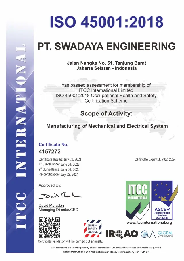telah lulus penilaian untuk keanggotaan ITCC International Limited ISO 45001: 2018 Occupational Health and Safety.